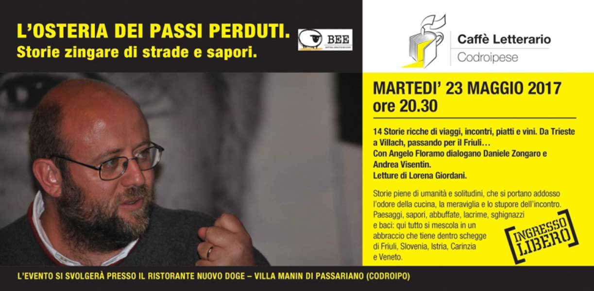 Il Caffè Letterario Codroipese, martedì 23 maggio 2017, alle ore 20.30, al Ristorante Nuovo Doge di Villa Manin di Passariano, ospiterà Angelo Floramo con il suo nuovo libro: