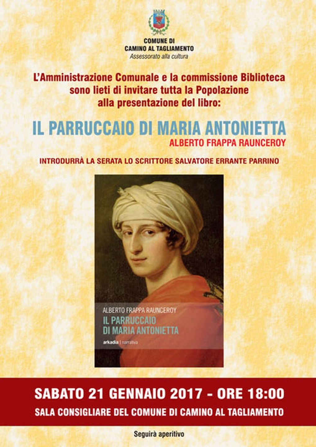Presentazione del libro di Alberto Frappa Raunceroy “Il parruccaio di Maria Antonietta”, edito da Arcadia editore.