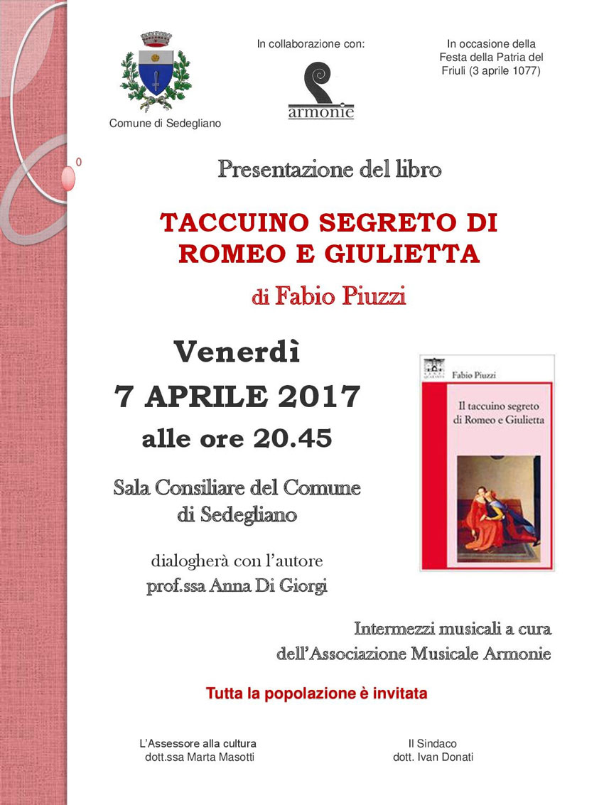 Fabio Piuzzi avanza l’ipotesi, ammiccante e sornione con una punta di orgoglio friulano, che Romeo e Giulietta non siano veronesi, ma i rampolli di una nobile e potente famiglia della Patrie furlana medievale: Luigi Da Porto alias Romeo e Lucina Savorgnan alias Giulietta.