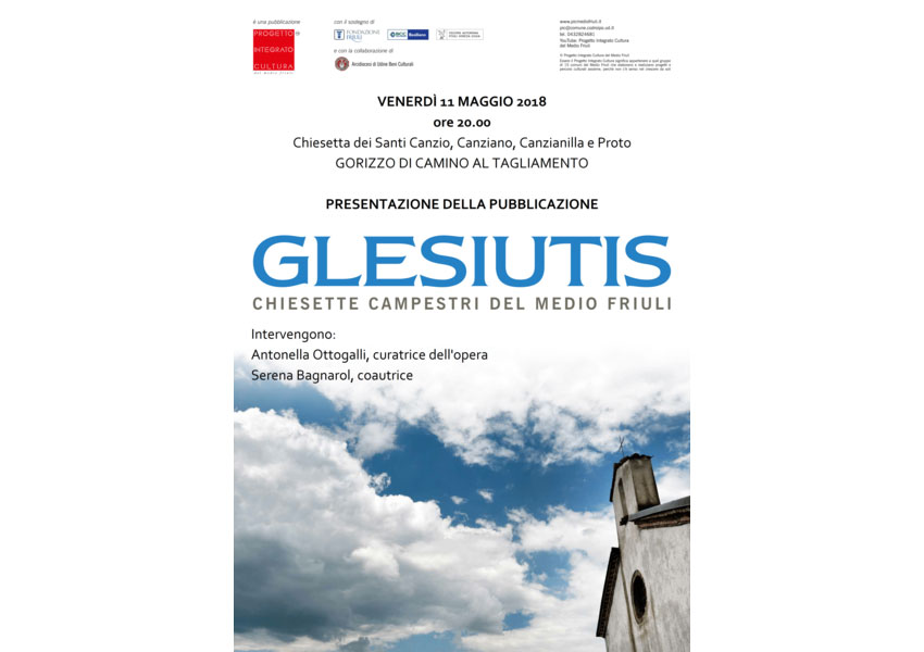 VENERDI' 11 MAGGIO 2018, alle ore 20.00, presso la Chiesa dei Santi Canzio, Canziano, Canzianilla e Proto, di Gorizzo si terrà la presentazione del volume "GLESIUTIS. Chiesette campestri del Medio Friuli".