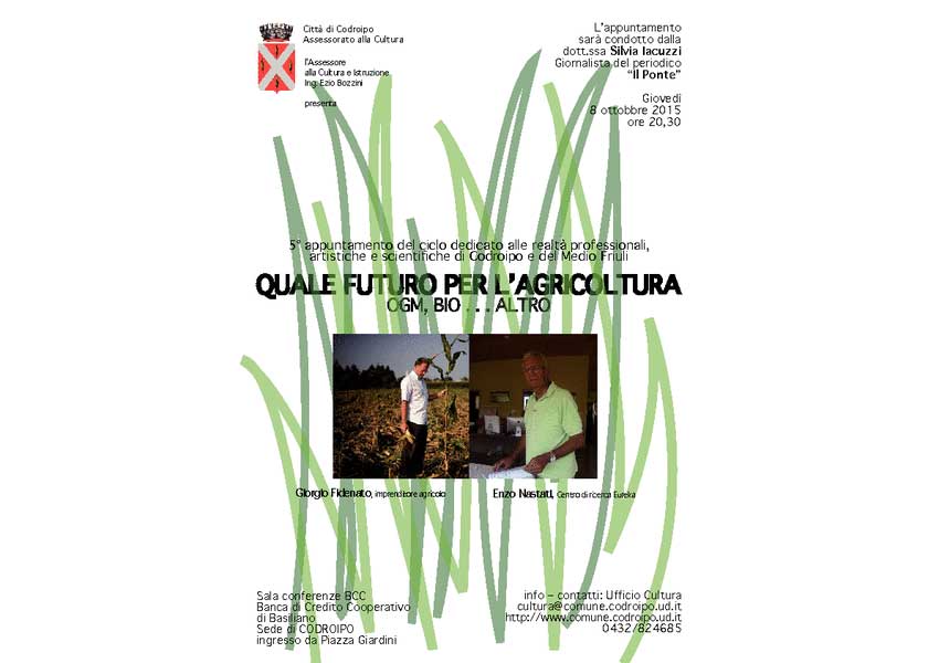 Giovedì 8 ottobre 2015 alle ore 20,30 incontro con Giorgio FIDENATO imprenditore agricolo e Enzo NASTATI Centro Ricerca Eureka