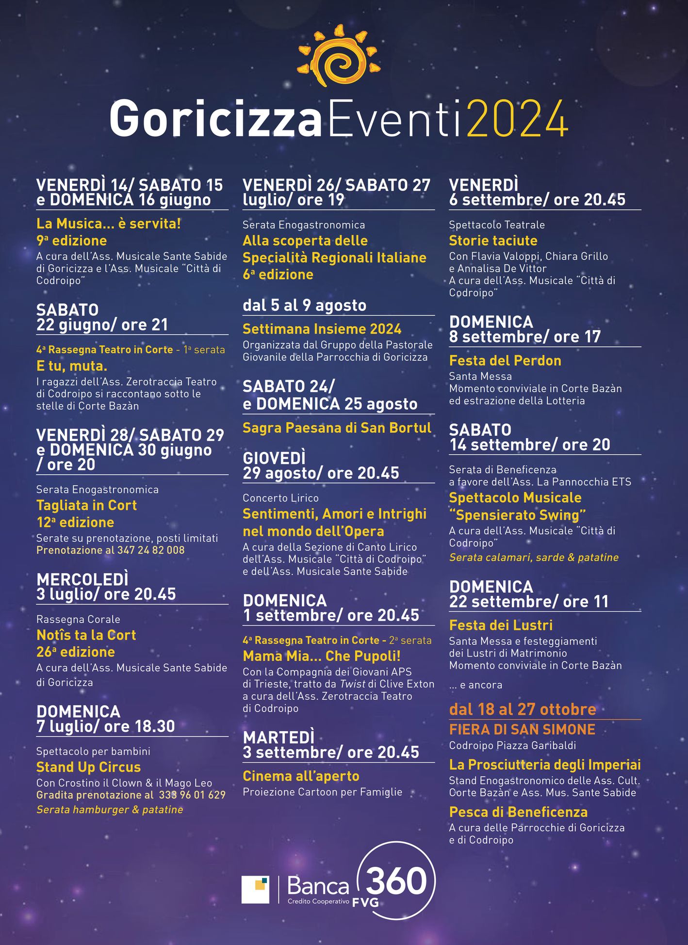 Chioschi aperti dalle ore 19.00, serate musicali con Vinnie Perinotto Band Live (sabato) e Friday People (domenica). Servizio di animazione per bambini dalle 19.00 alle 22.00. Come da tradizione una fetta di anguria per tutti!