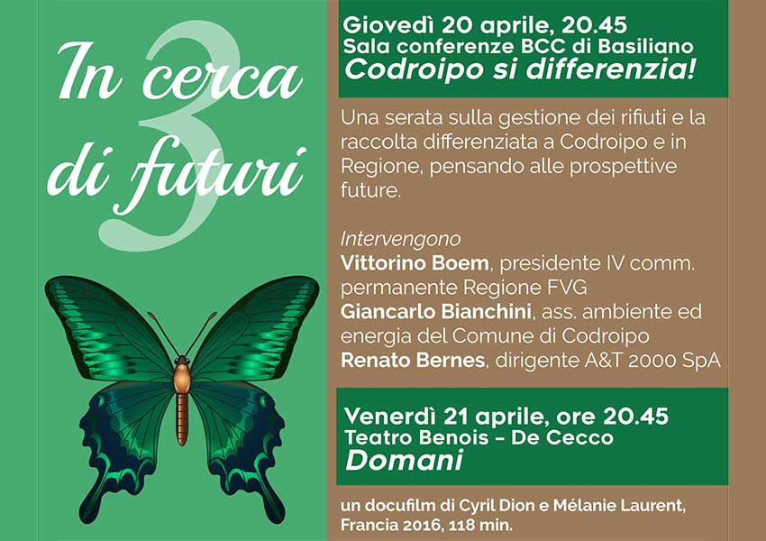 Giovedì 20 alle ore 20:45 presso la Sala Conferenze BCC Basiliano – “Codroipo si differenzia!” Una serata sulla gestione dei rifiuti e la raccolta differenziata a Codroipo e in Regione. Pensando alle prospettive future.
