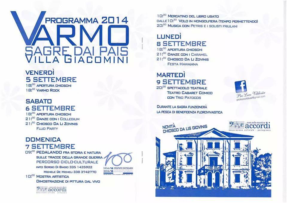 Venerdì 5 settembre ore 18.00 Apertura chioschi ore 18.30 Varmo Rock