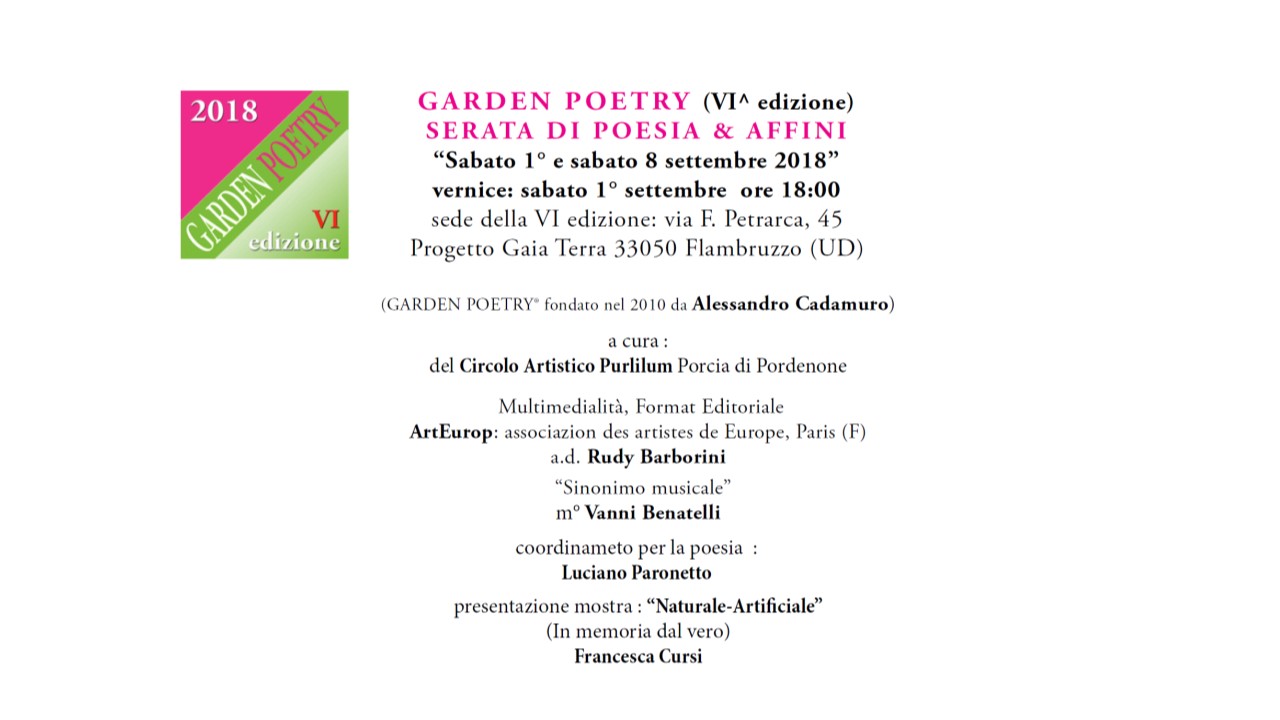 Poeti: Davide Burgio - Alessandro Cadamuro - Simone Cortello - Francesca Cursi - Simone De Biasi - Roberto Dedenaro - Iliana De Monte - Franco Del Zotto - Marco Kravos - Filippo Merlo - Luciano Paronetto - Carlo Marcello Conti per la Rivista Internazionale di Poesia Zeta (Campanotto Editore)