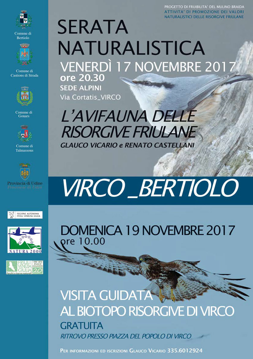 Nell'ambito del Progetto di fruibilità del Mulino Braida e di promozione dei valori naturalistici delle risorgive friulane, due nuove iniziative avranno luogo a VIRCO e a TALMASSONS.